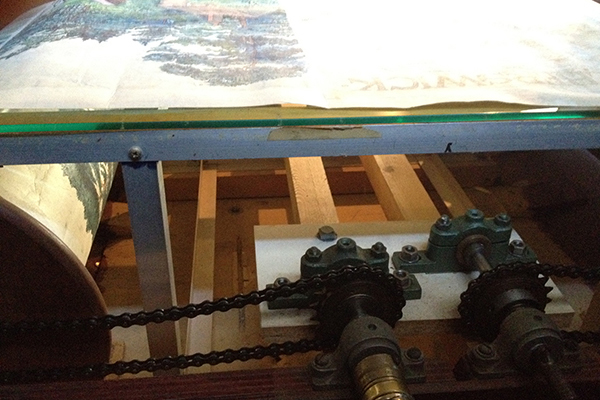 Richard had the scroll ready for those who had turned up to view, probably about ten of us. As we got to one side of the device Richard worked his magic with the rollers.